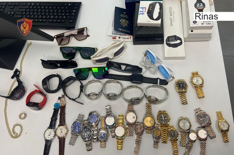 Në cilësinë e provës materiale janë sekuestruar veshje dhe aksesorë të markave të ndryshme (ora dore, syze dielli, çanta etj.) Dhe disa fatura me vlerë rreth 14 300 dollarë.