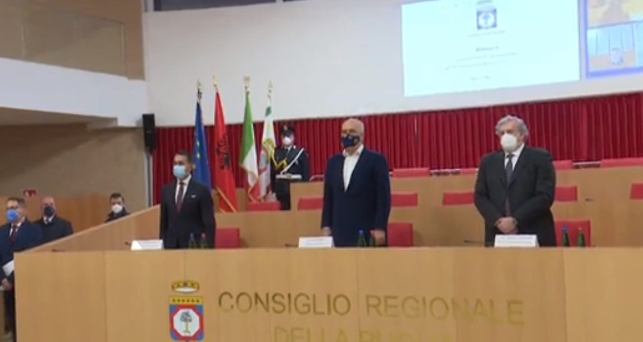 Kryetarit të Këshillit të Puljas, Michele Emiliano i dhuroi kryeministrit Edi Rama çmimin “Rrënja e Pulias” në ceremoninë përkujtimore të fillimit të emigracionit shqiptar drejt Italisë 30 vite më parë.