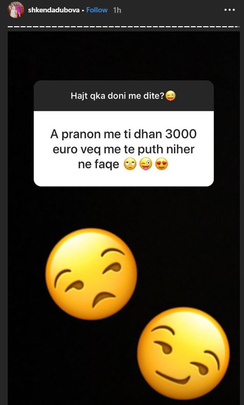 Së fundmi Shkënda ka marrë një ofertë të çmendur nga një fans i saji. “A pranon me ti dhënë 3000 euro veç me të puth njëherë në faqe,”- shkruhet në mesazhin që e ka bërë vetë këngëtarja publik.