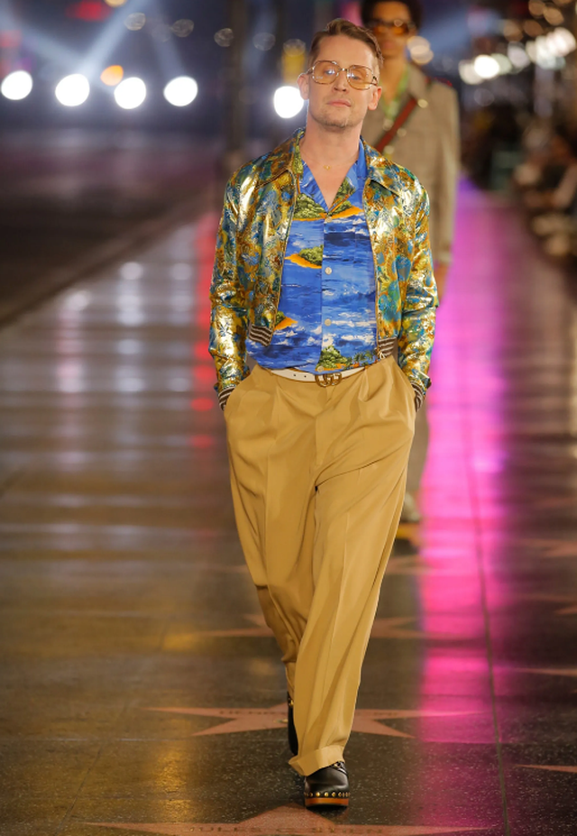 Të gjithë e mbajnë mend yllin e “Home Alone” Macaulay Culkin i cili shënon një pjesë të rëndësishme të fëmijërisë të kujtdo me rolin e tij si Kevin. Edhe pse shpesh e shmang vëmendjen, së fundi ai bëri një paraqitje surprizë si model në pasarelë për “Gucci”. I shoqëruar nga yjet e tjerë si Jared Leto dhe Jodie Turner-Smith, aktori i “Home Alone” dukej i qetë me një veshje të gjallë ndërsa labeli pushtoi Bulevardin Hollywood për shfaqjen e tij “Gucci Love Parade”. Duke ecur mbi yjet e famshme të Hollivudit me terrakote me duart e futura në xhepa, Culkin kishte një palë pantallona të gjera, një këmishë Havai dhe xhaketë bomber me lule me shkëlqim. Veshja e tij plotësohej me një palë syze dielli dhe një rrip me logo Gucci.