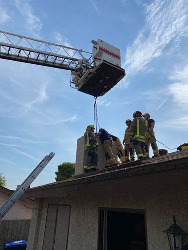 Zjarrfikësit në Nevada kanë kryer një shpëtim të pazakontë kur një adoleshente mbeti jashtë shtëpisë së saj dhe u përpoq të hynte brenda duke zbritur përmes oxhakut, por u bllokua brenda.