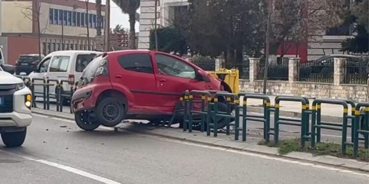 Një automjet tip Citroen është përplasur me barrierat mbrojtëse të rrugës pranë rrethrrotullimit në lagjen nr. 4 në Durrës.