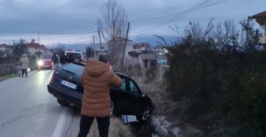 Aksident në aksin Korçë-Pogradec, makina përfundon në kanal, plagosen dy fëmijë dhe një grua