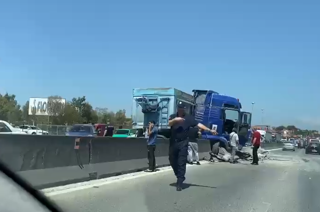 Një aksident ka ndodhur në superstradën Tiranë-Durrës. Mësohet se dy kamionë janë përplasur me njëri-tjetrin. Si pasojë e forcës së madhe, njëri prej tyre është përplasur dhe me trafikndarësen e superstradës.