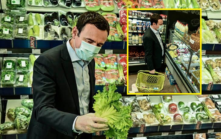 Kryeministri i Kosovës Albin Kurti ka shfrytëzuar fashën orare të vendosur për qytetarët për të bërë pazaret. Ai ka ndarë foto në rrjetet sociale ku shfaqet me maskë dhe doreza duke bërë blerje të produkteve ushqimore, ku falënderon të gjithë punonjësit e këtij sektori që kanë qëndruar në shërbim të konsumatorëve.