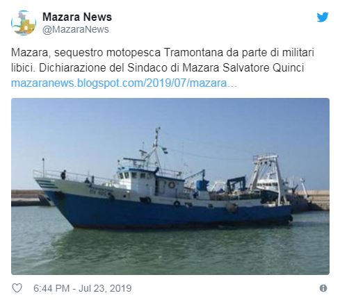 Një anije peshkimi italiane “Tramontana di Mazara del vallo”, është kapur dhe sekuestruar nga një anije patrullimi e ushtrisë libiane në Gjirin e Sirte.