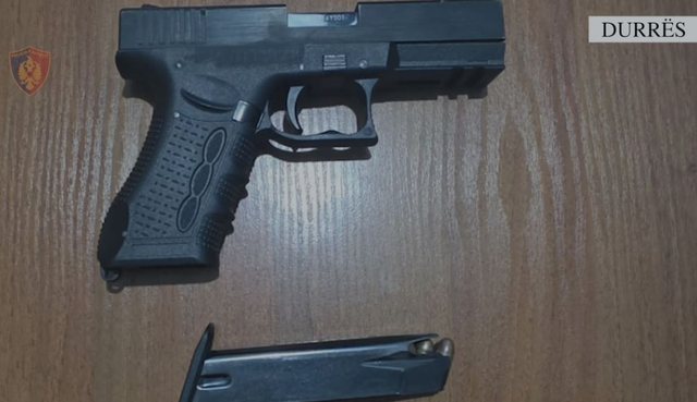 Gjatë kontrollit fizik, shërbimet e Policisë i gjetën në brez shtetasit I. D., një armë zjarri, pistoletë Glock, me municion luftarak, të cilat u sekuestruan në cilësinë e provës materiale.