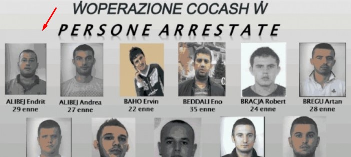 Në vitin 2013, Endrit Alibej dhe vëllai i tij janë arrestuar në Itali nën akuzën e drejtimit të një organizate kriminale e cila furnizonte me kokainë shteti fqinj. Madje asokohe në Itali, Endrit Alibej së bashku me të vëlannë kanë trafikuar një sasi prej dhjetëra kilogramësh drogë, në vlerë 10 milionë euro. 31 persona u arrestuan si pjesë e bandës ndërsa 14 ishin shqiptarë.