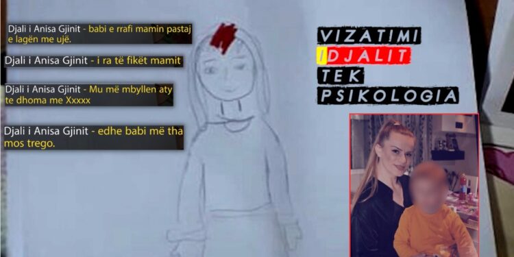 Madje fëmija ka bërë një vizatim tek psikologia ku ka pikturuar të ëmën me një shenjë në kokë.