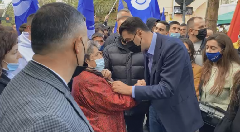 Një e moshuar i afrohet Bashës: Po presim sikur do na bjerë diçka nga qielli Basha: Asgjë nuk bie nga qielli. Duhet të zgjidhni ju. Votoni për ndryshimin.