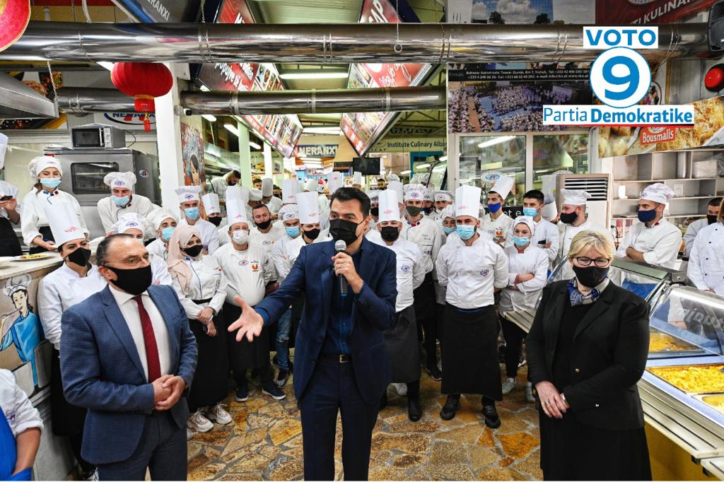 Kreu i PD, Lulzim Basha ka vizituar Institutin e Kulinarisë ‘’Neranxi’’ për të bashkëbiseduar me studentët. Ai u surprizua nga të rinjtë të cilët i kishin përgatitur një tortë me logon ‘’Shqipëria fiton’’, teksa vetë ai pati fatin të shkruajë ‘’Voton 9’’ sipër tortës.
