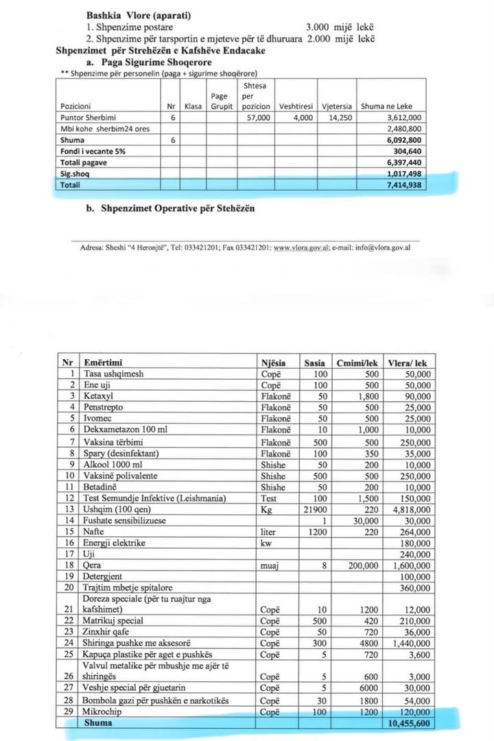 * Pagat e 6 punonjësve: 7,414,938 lekë. Një punonjës bashkë me orë nates arrin deri në 158,000 lekë/muaj.