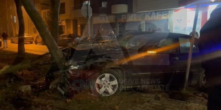 Një automjet tip benz i cili lëvizte me shpejtësi të lartë ka përplasur fillimisht një tjetër mjet dhe më pas është përplasur me pemën. Si pasojë ka dëme të shumta materiale, por të lënduar.