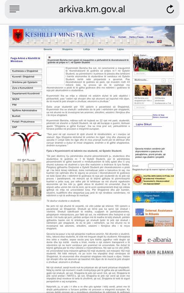 “Por jo vetem kaq, ne vitin 2010 eshte bere projekti i rikonstruksionit te plote te godinave, eshte hapur tenderi dhe ne vitin 2011 kane filluar punimet per zbatimin e projektit dhe me dt 15 nentor te vitit 2012 eshte inauguruar perfundimi i rikonstruksionit te plote me te gjitha mjediset e godines Nr 1, pese kateshe me vlere 43 milione leke”, shkruan ndër të tjera.