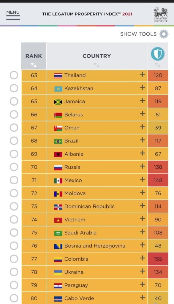BORXHI PUBLIK NË MAJË, POR PROSPERITETI PËRTOKË! Futesh në borxh për t’u përmirësuar dhe jo për t’u përkeqësuar! Në të kundërt ndodh me vendin tonë. Sipas Indeksit të Prosperitetit, të përgatitur nga Legatum Institute, institucion i pavarur prestigjoz i përpunimit të statistikave që vijnë nga burime të besueshme, rezulton se vetëm brenda dy viteve të fundit Shqipëria ka përkeqësuar me tre shkallë treguesin e prosperitetit, duke rënë në vendin e 69-të për vitin 2021, nga vendi i 66-të, që ndodhej në 2019.