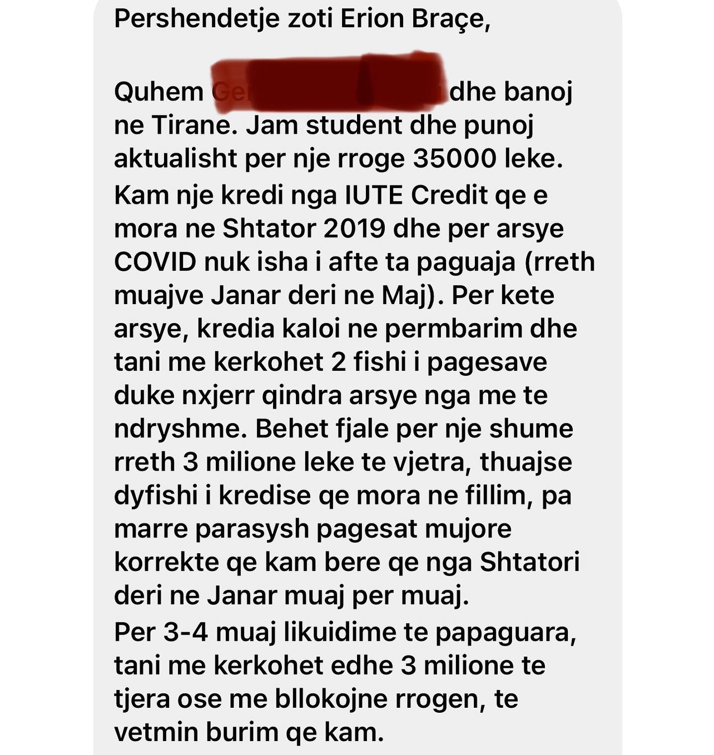 Jeni ndjere, te mashtruar dhe grabitur me borxh te shpejte? Urdheroni lexoni ne foton e dyte; Eshte mesazhi qe mora sot nga nje student qe edhe punon. Ka marr nje borxh te shpejte ne nje institucion financiar borxhi, jo banke dhe borxhi po e mbyt!