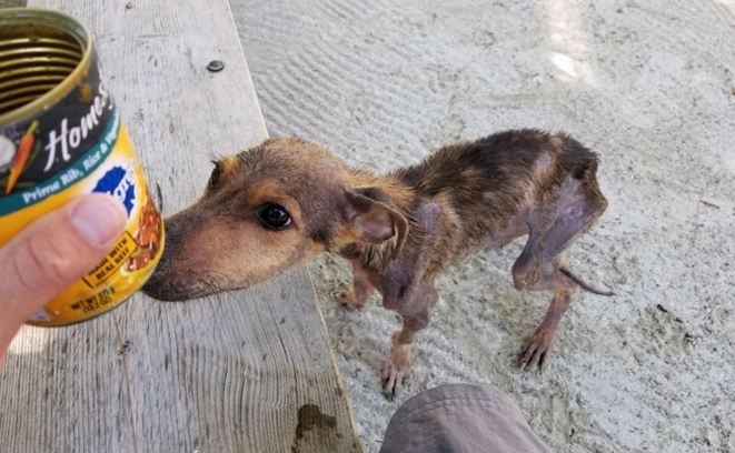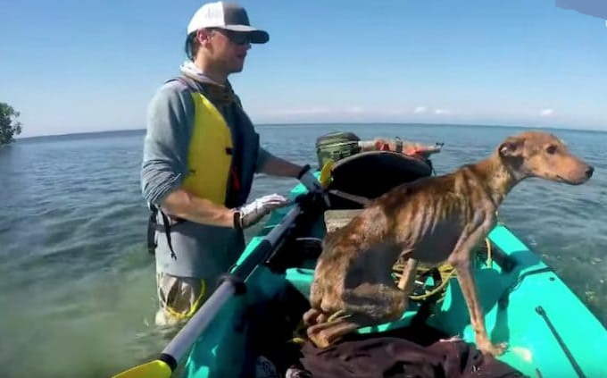Një ditë, gjatë qëndrimit të tij, ai mori një kanoe dhe u nis drejt një ishulli të vogël, kur pa një qen duke ngordhur urie që ecte rreth vendit.