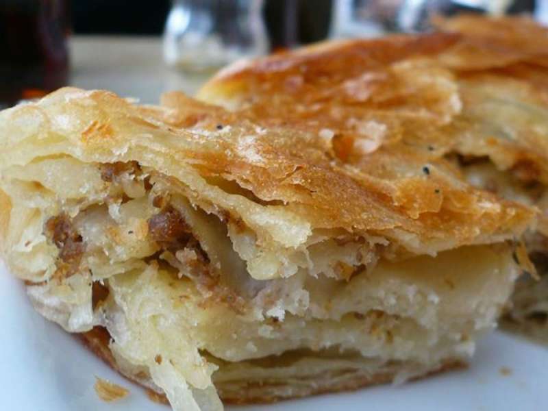 Përgatitja Zëmë brumin me pak ujë të vakët dhe e lëmë të pushojë. Ziejmë kokën e viçit dhe e ndajmë në copa të vogla. Në një tigan kaurdisim qepët, shtojmë copat e mishit për t’u dhënë shije, i rregullojmë me kripë e piper dhe fikim sobën.