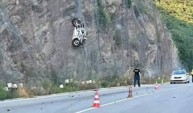 Bëhet me dijë nga një foto që po qarkullon në media, se një motor ka ngecur në faqen e një kodre.
