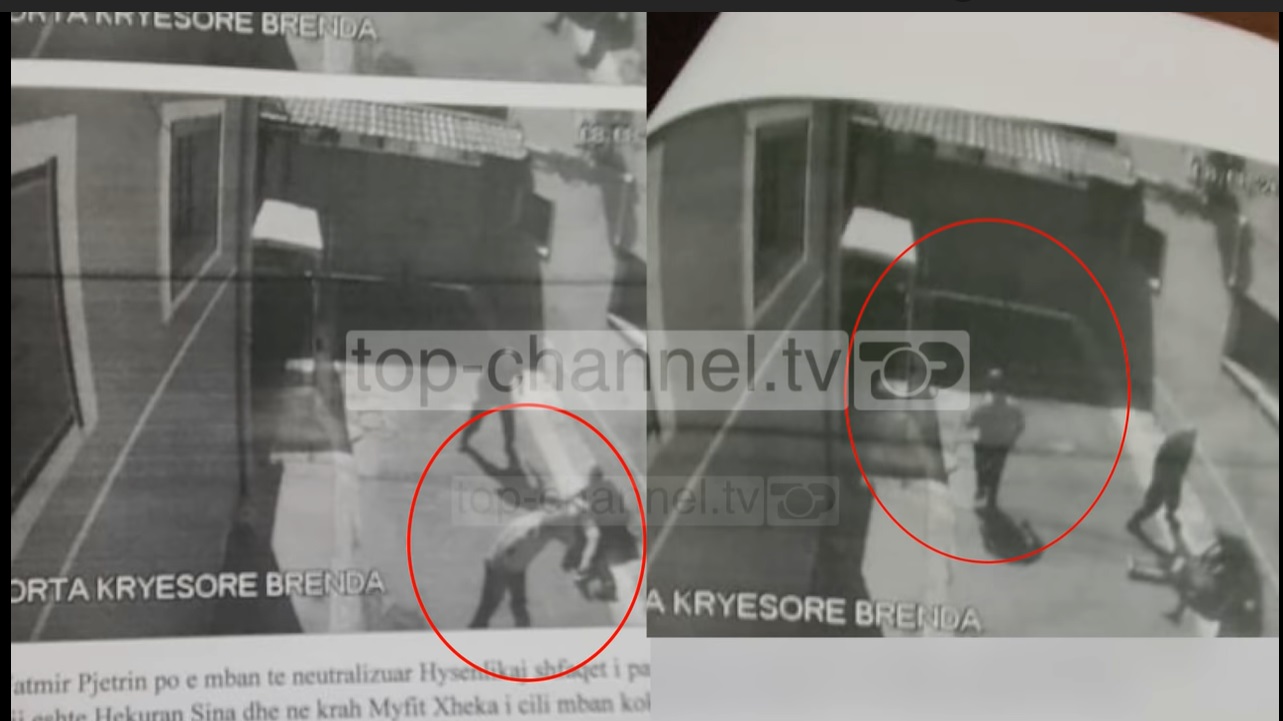 I dënuari Fatmir Pjetri zbret në sheshpushim dhe pas përleshjes së bashku me Çekajn drejtohet për tek porta kryesore e burgut , aty ku përleshja mes tyre dhe tre policeve të tjerë është e dukshme.