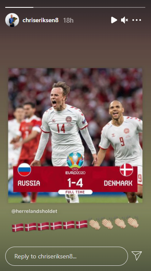 Kjo arritje nuk ka kaluar pa u komentuar nga ylli i Euro2020, Chris Eriksen. Fatkeqësisht nga shtëpia, numri 10 i danezëve tregon se po e ndjek ndeshjen. Ja postimi i tij në Instagram: