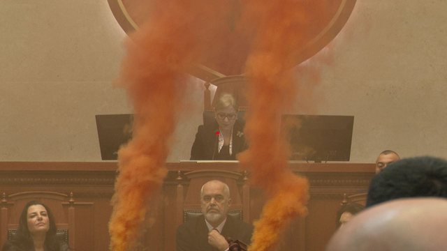 Deputetët e opozitës ndezin tymuese në Kuvend, salla “pushtohet nga tymi”, merr flakë tryeza! PS miraton buxhetin pa diskutim