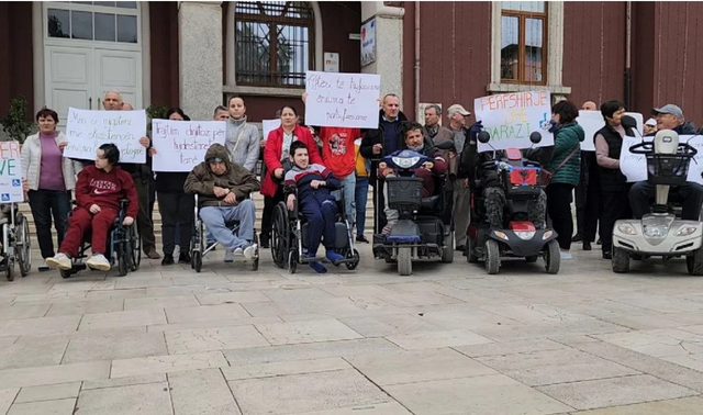 Bashkë me ta, këtë 3 dhjetor shumë persona para dhe tetraplegjikë, të verbër dhe familjarë të tyre morën pjesë në marshimin protestë në sheshin kryesor të qytetit dhe ndaluan para bashkisë duke ngritur zërin për problemet e tyre.