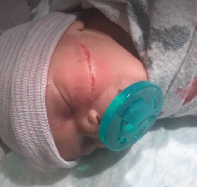 U deshën 13 qepje për të mbyllur të carën e thellë në faqen e majtë të një foshnjeje në Denver të Kolorados që erdhi në jetë me lindje cezariane. Të afërmit e vajzës së porsalindur janë të t ronditur.