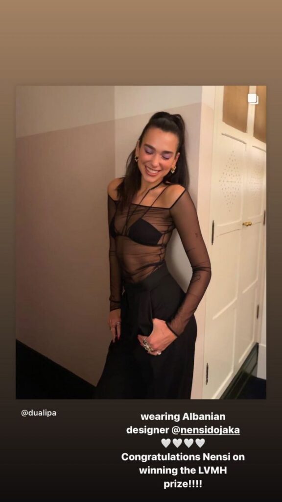 Dua Lipa tregon dhe njëherë që është mbështetëse e talenteve shqiptare. Diva e muzikës u shfaq e veshur nga stilistja Nensi Dojaka, e cila pak ditë më parë çmimin e madh LVMH 2021 për talentet e reja, duke e bërë kështu një emër të rëndësishëm të botës së modës.