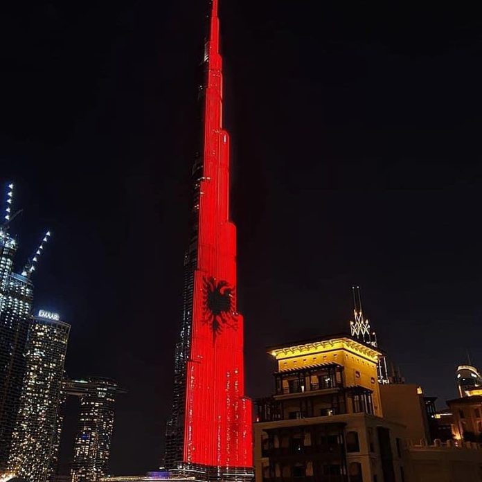 Ndërtesa më e lartë në botë, Burj Khalifa, është ndriçuar me ngjyrat e flamurit shqiptar gjatë mbrëmjes së sotme. Kjo ka ardhur në shenjë urimi në ditën e Pavarësisë së shpallur më 28 nëntor 1912 për Shqipërinë.