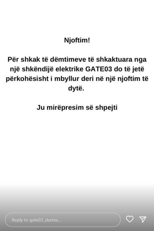 “Për shkak të dëmtimeve të shkaktuara nga një shkëndijë elektrike GAT03 do të jetë përkohësisht i mbyllur deri në një njoftim të dytë. Ju mirëpresim së shpejti”, thuhet në njoftim.