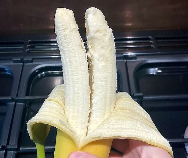 Studenti u çudit kur e qëroi bananen, për të cilën supozon se është fruti i tij i preferuar, u shokua kur gjeti dy copë brenda, të bashkëngjitura me njëra-tjetrën. Ai përfundimisht e kapërceu befasinë dhe hëngri njërën nga to, para se t’i jepte të dytën nënës së tij. Sipas ekspertëve, rreth pesë përqind e bananeve mund të rriten në këtë mënyrë.