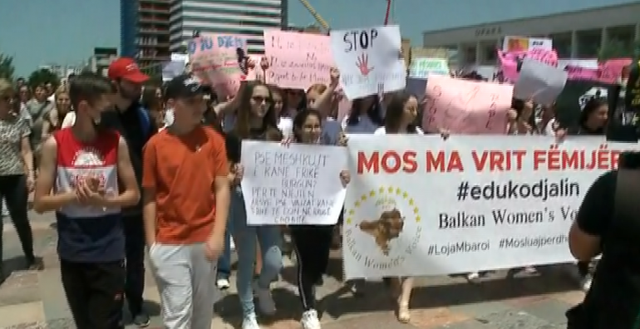 Po ashtu pjesë në p rotestë ishin edhe slogane “Mos ma vr i fëmijërinë”, “Ne jemi me ty”; “Ti s’je vetëm” P rotesta nisi pas përd hunimit të 15-vjeçares në Mërditë, nga 4 të rritur.