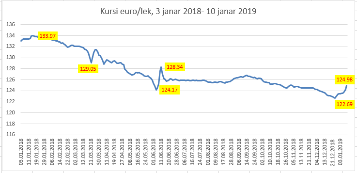 Monedha e përbashkët ka rikuperuar pikë kundrejt lekut që nga data 27 dhjetor duke u forcuar me 2.2 pikë kundrejt monedhës vendase.