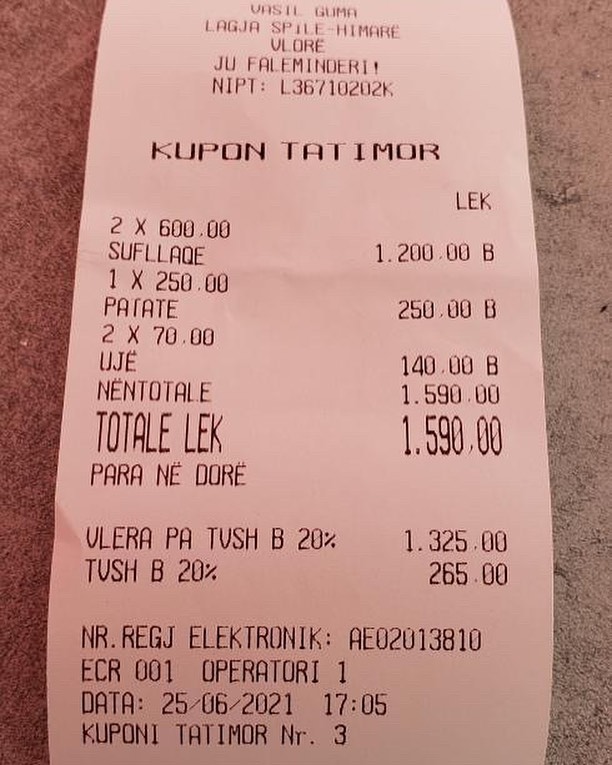 Turistët shqiptarë dhe të huaj, përveç temperaturave të larta, përballen dhe me çmime të kripura në jug të vendit. Në rrjete sociale është publikuar një kupon tatimor nga një “Fast Food” në Himarë.