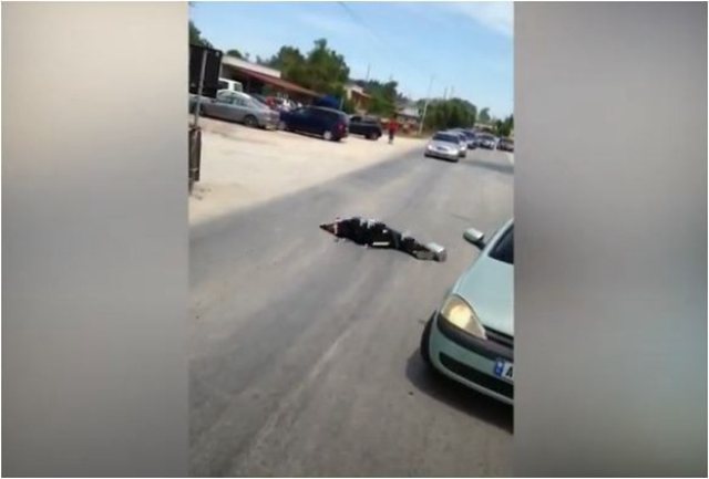 Ai ka qendruar për disa momente i shtrirë në rrugë, derisa është larguar nga disa drejtues automjetesh.