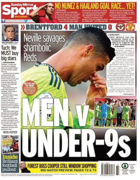 “Burrat kundër fëmijëve”, shkruan Mirror. “Minimumi i ri i United”, shkruan Telegraph. Mediat britanike kanë përzgjedhur imazhin e Ronaldo-s që reflekton qartë hidhërimin për këtë humbje të rëndë.