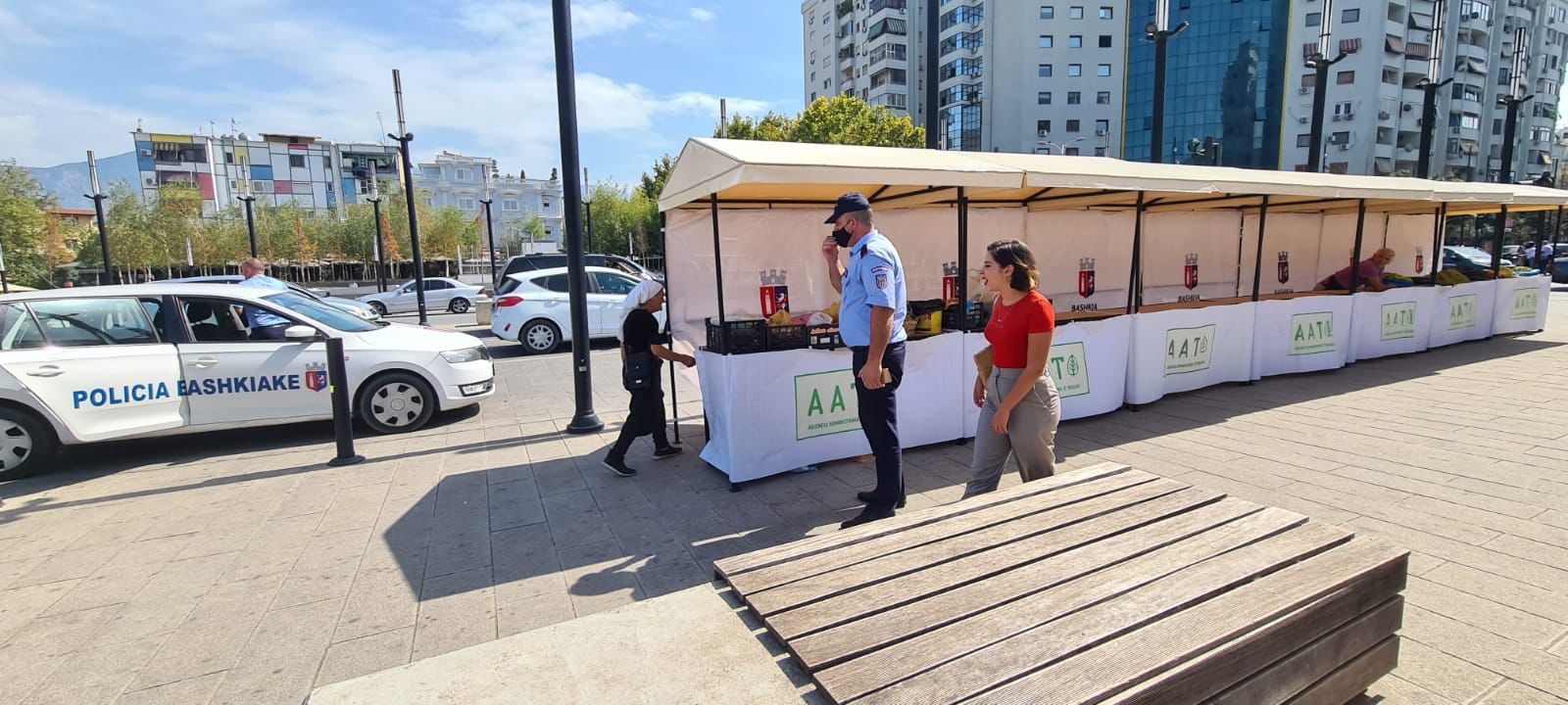 Efektivët e Policisë Bashkiake, së bashku me punonjës të shërbimit social në Bashkinë e Tiranës, kanë shoqëruar të moshuarën, e cila vazhdonte të shiste në trotuar, për t’i tregtuar produktet e saj në tregun e Lëvizshëm në Bulevardin e Ri. Sot ajo i shet produktet e saj e qete, në kushte të sigurta dhe e mbrojtur nga temperaturat e larta të mesditës. Fotot janë bërë në Tregun e Lëvizshëm i cili është vendosur në Bulevardin e Ri në Tiranë.