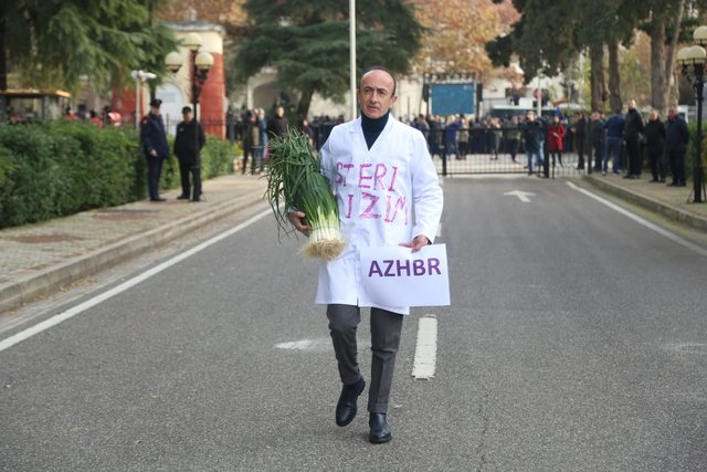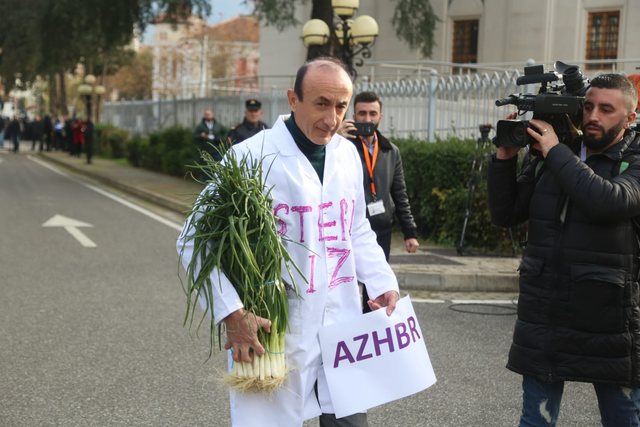 Ndryshe nga deputetët e tjerë, Dashnor Sula është paraqitur ndryshe. Ai u shfaq i veshur me uniformë mjekësh me mbishkrim ‘sterilizimi’ dhe në duar mbante një tufë me qepë. Gjithashtu mbante një pankartë ku shkruhej ‘AZHBR’.