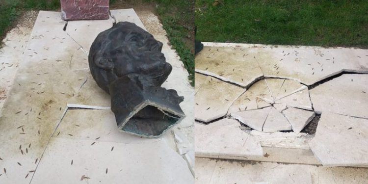 Sikurse shihet nga pamjet e publikuara nga gazetari Bledi Mane, busti është thyer e rënë në tokë, ndërsa është shkatërruar edhe pallka e mermerit, e cila duket qartë se është sulmuar.