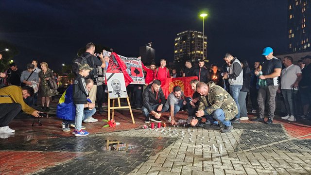 Një grup të rinjsh, pjesë e Tifozëve Kuq e Zi, anëtarë të partive politike opozitare dhe shoqërisë civile, ndezën qirinj dhe përcollën mesazhe në nder të reshterit të rënë në krye të detyrës në Kosovë, Afrim Bunjaku.