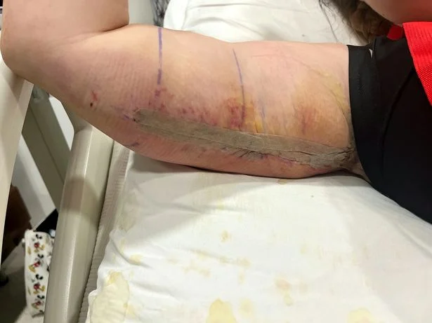 Pas kthimit në Mbretërinë e Bashkuar, ajo u dërgua me urgjencë në spital pasi plaga e saj u infektua sërish dhe u nevojitën tetë operacione për të shpëtuar jetën e saj.