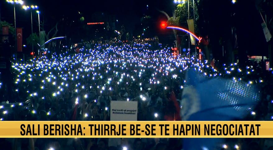 Ora 21:07- Ndonëse tashmë errësira ka rënë mbi kryeqytet dhe mbi Bulevardin “Dëshmorët e Kombit”, qytetarët që marrin pjesë kanë ndezur të gjithë telefonat.