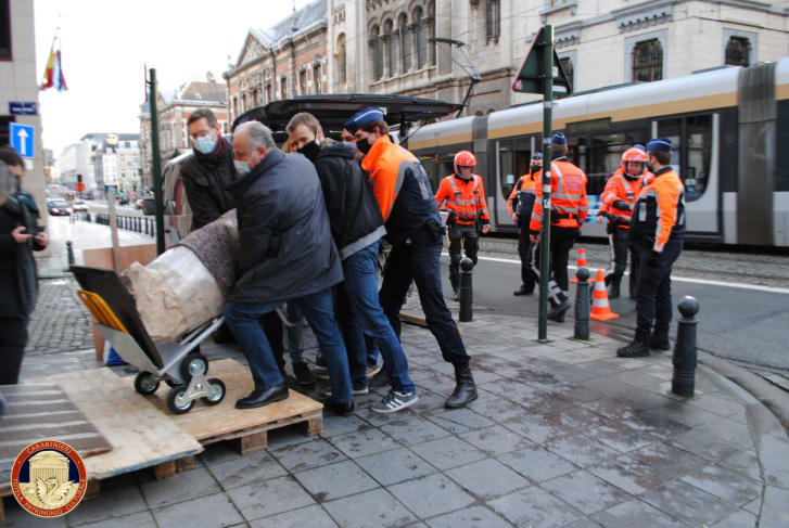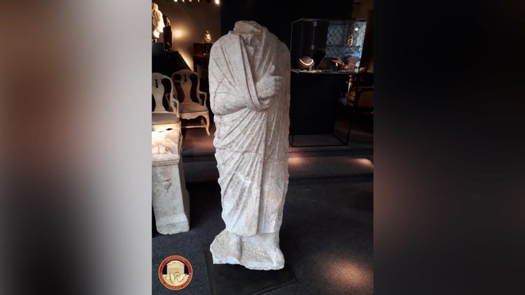 Një hetim i bërë me bashkëpunimin e autoriteteve belge zbuloi trafikimin e paligjshëm të objekteve kulturore të drejtuara nga një biznesmen italian i cili përdori një pseudonim spanjoll dhe është referuar në Prokurorinë e Romës për marrjen e statujës së vjedhur dhe eksportimin e saj, thanë autoritetet.