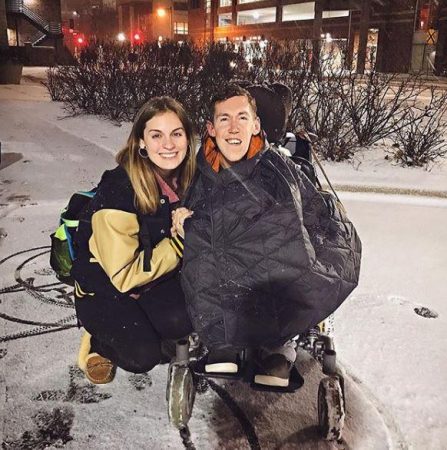 Ai është 26 vjeç me aftësi të kufizuar dhe i detyruar të qëndrojë në karrike me rrota, ndërsa ajo është 25 vjece. Ajo që i bashkon këtë çift nga SHBA është dashuria e madhe që kanë për njëri tjetrin. Ata nuk janë si të gjithë çiftet e e tjerë, sepse të kujdesesh për partnerin e paralizuar dhe me probleme nuk është aspak e lehtë. Por Hannah Aylward nuk do t’ia dijë për pengesat dhe vështirësitë që duhet të kalojë. Prej tre vjetësh ajo është e lidhur me Shane Burcaw i paralizuar në karrike me rrota. Ata kanë vendosur që historinë e tyre ta bëjnë publike në kanalin e tyre në Youtube, “Squirmy and Grubs. “Kur unë dhe Hannah jemi në publik, të huajt mendojnë se jemi motër dhe vëlla, ose që është kujdestarja ime”- tregon Shane, i cili është në karrike me rrota që në moshën 2-vjecare.