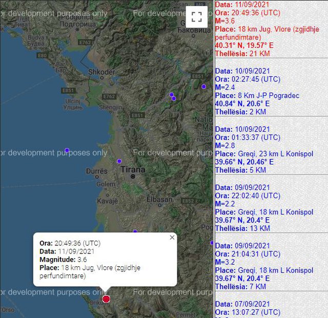 Nga ana tjeter sipas IGJEUM, termeti i fundit i regjistruar ne Shqiperi ka ndodhur ne ne Pogradec dhe ka qene me fuqi 2.4 rihter./lajmifundit.al