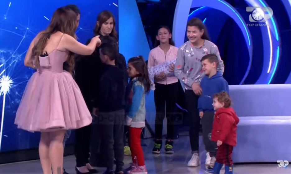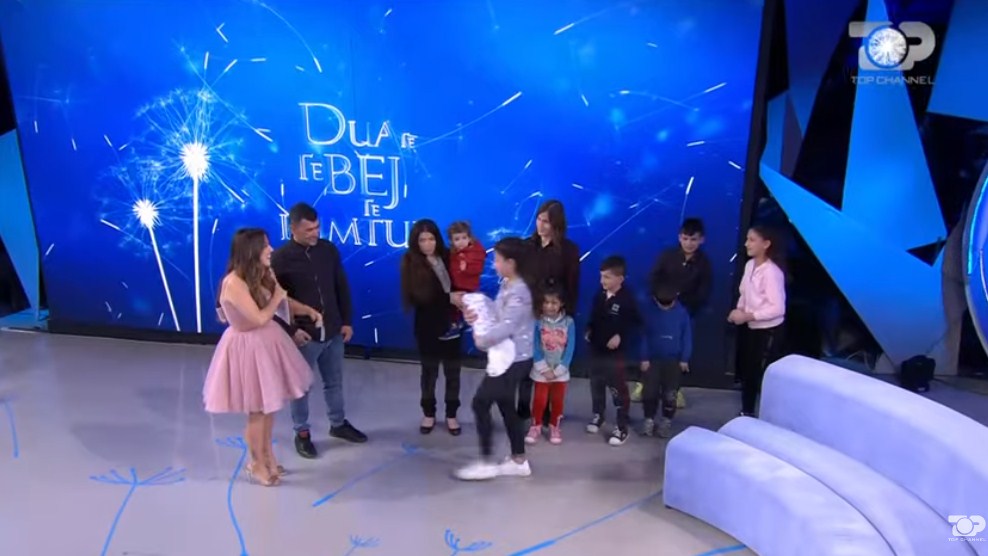 Iliazi teksa prezantonte fëmijët e tij: Era, Shaqiri, Skenderi, Ilmia, Florini, Blerina, Ska më tani. Ajo e vogla është Esmeralda. U po kemi edhe bebin. Tre muaj është. Grisel e ka emrin. Ariel. E ngatërrova me një kalam atje në fshat. ja ta mbaj unë.