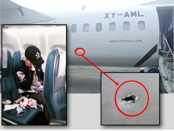 Tre plumba shpuan trupin e avionit dhe njëri fatkeqësisht depërtoi në faqen e njërit prej udhëtarëve që mbeti i plagosur.
