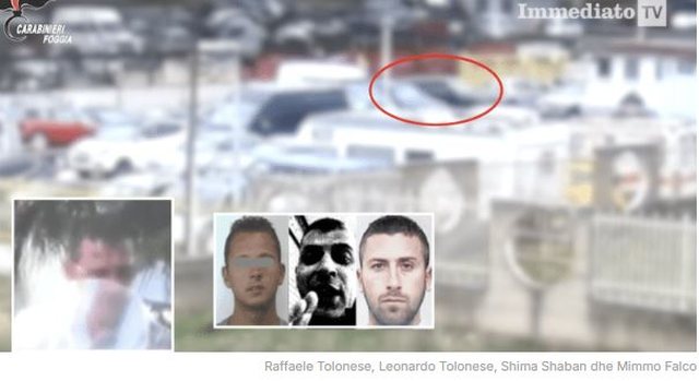 Hetuesit filmuan pamje video pranë klubit, si dhe në një shtëpi funerale në Foggia dhe pranë shtëpisë së Tolonese në Orta Nova.