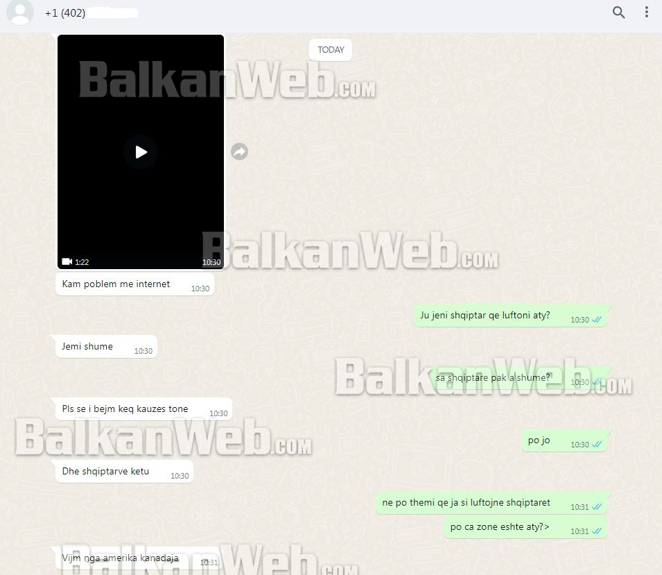 BalkanWeb sjell si dëshmi të bisedës me shqiptarin pjesë nga komunikimi me të, por për shkak të situatës nuk mund të verifikohet vendndodhja e tij.